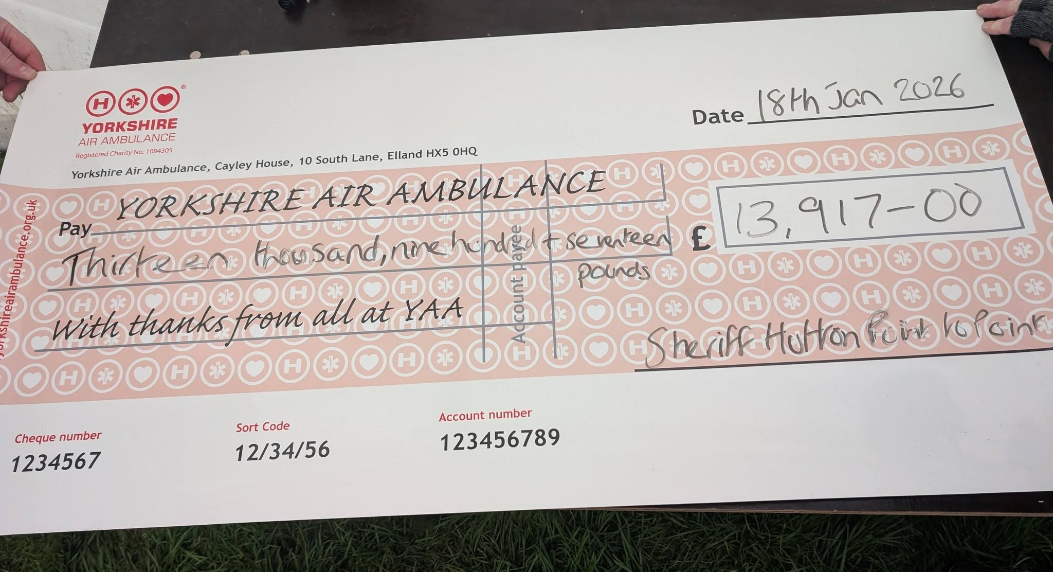 We were proud to present a cheque for almost £14,000 to the Yorkshire Air Ambulance charity.