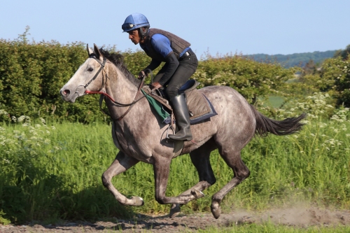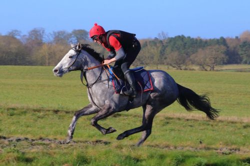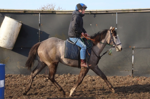 A roan filly by Outstrip out of multiple winning sprinter Be Lucky, The Grey Lass is a half sister to Pronghorn. The Grey Lass is a two time winner with previous victories at Beverley and Southwell. She was retired in 2024 and left the stable to play polo.