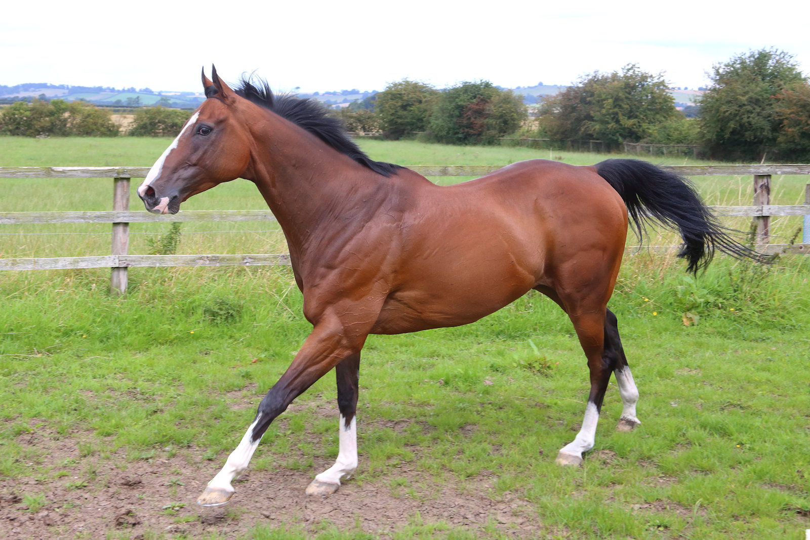 A real favourite of ours, Refuge has been at the yard since he was a foal. He's a striking looking eight-year-old gelding with a white blaze and four white socks and stands at around 15.3hh.